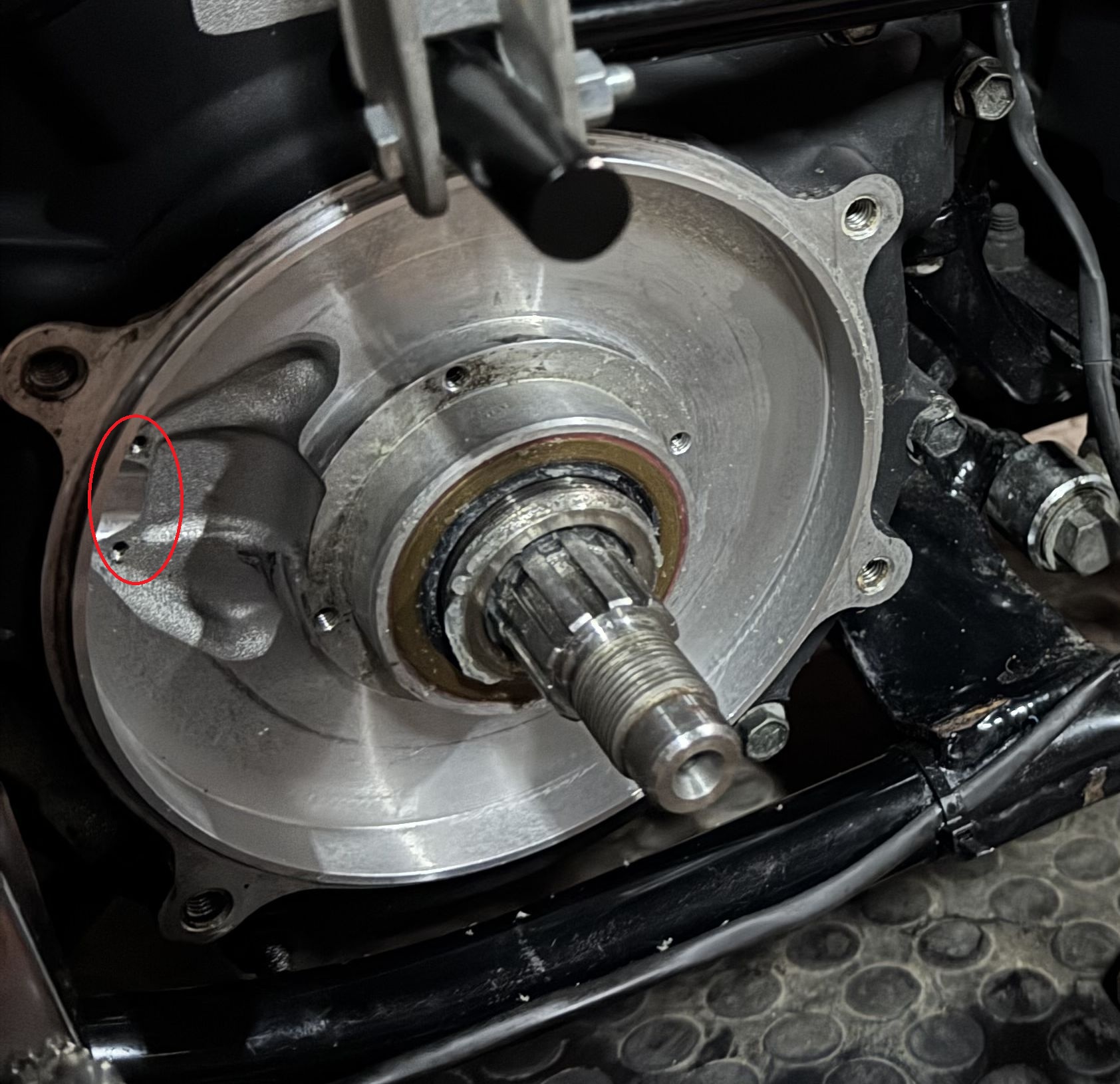 :クランクケースの射込みの隙間から漏れ